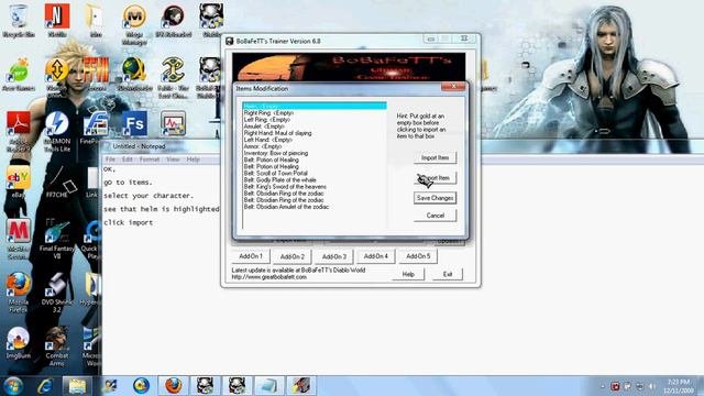 How to spawn Items into your inventory In the Game diablo with bobbafett's 1.09 trainer.