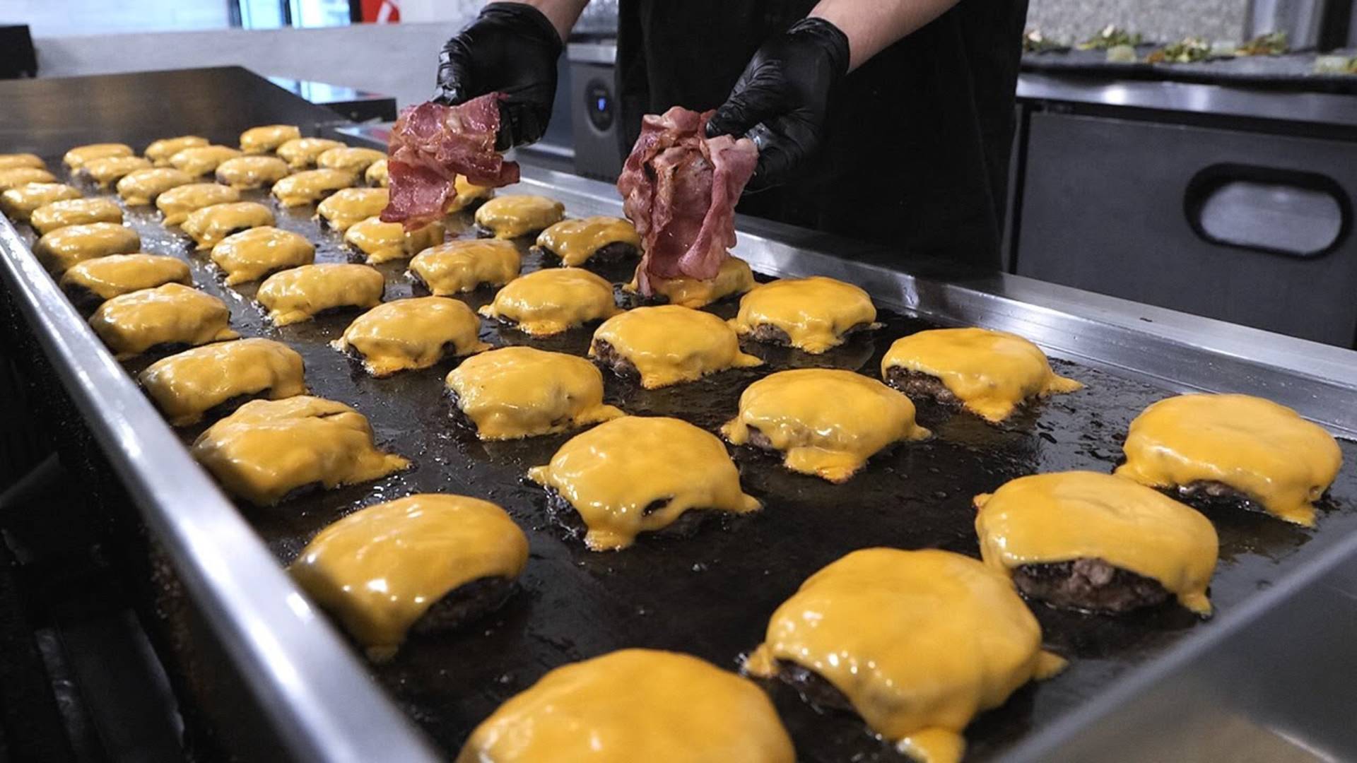 Гигантский чизбургер с тройным беконом, корейская бургерная