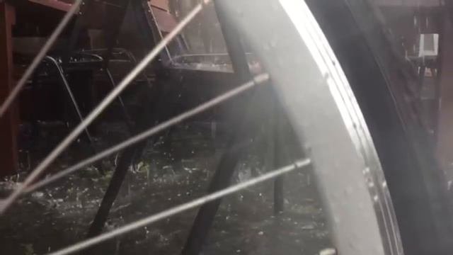 Попал под ливень. Следом пошел град. Далее пришлось прятаться под оставшимися навесами рядом с кафе. Вот что получилось.