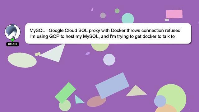 MySQL : Google Cloud SQL proxy with Docker throws connection refused To Access My Live Chat Page, On Google, Search for "hows tech developer connect" So here is a secret hidden feature I promissed to tell you. This is a YouTube's feature which works on Desktop. First, Make sure the video is currently in playing mode. Then, type the letters 'awesome' on the keyboard. The progress bar on YouTube will be altered to a flashing rainbow. Here's a short introduction about myself, Hello there, my name is Delphi. Let me aid you in resolving any queries you may have. MySQL : Google Cloud SQL proxy with Docker throws connection refused If you need more specific answers, please reach out to me through comments or chat. We welcome your thoughts and feedback, so please comment below with your answer or insights to the answer. If you provide an answer, I will 'heart' it as a sign of gratitude. proxy SQL with throws MySQL : refused Cloud connection Docker Google