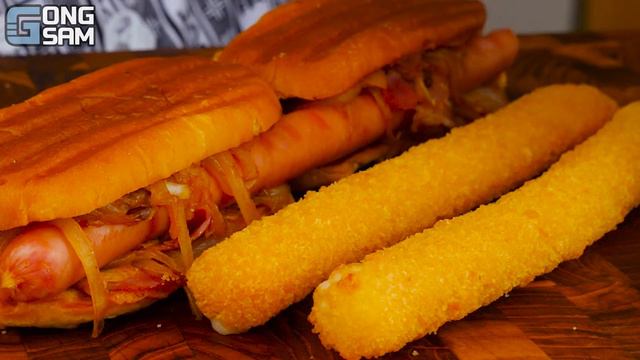 ASMR MUKBANG 직접 만든 햄버거 치즈스틱 불닭볶음면 핫도그 먹방 & 레시피 FIRE NOODLES AND BURGER EATING SOUND!