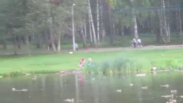 Красивый и сказочный парк с водоёмами и утками
