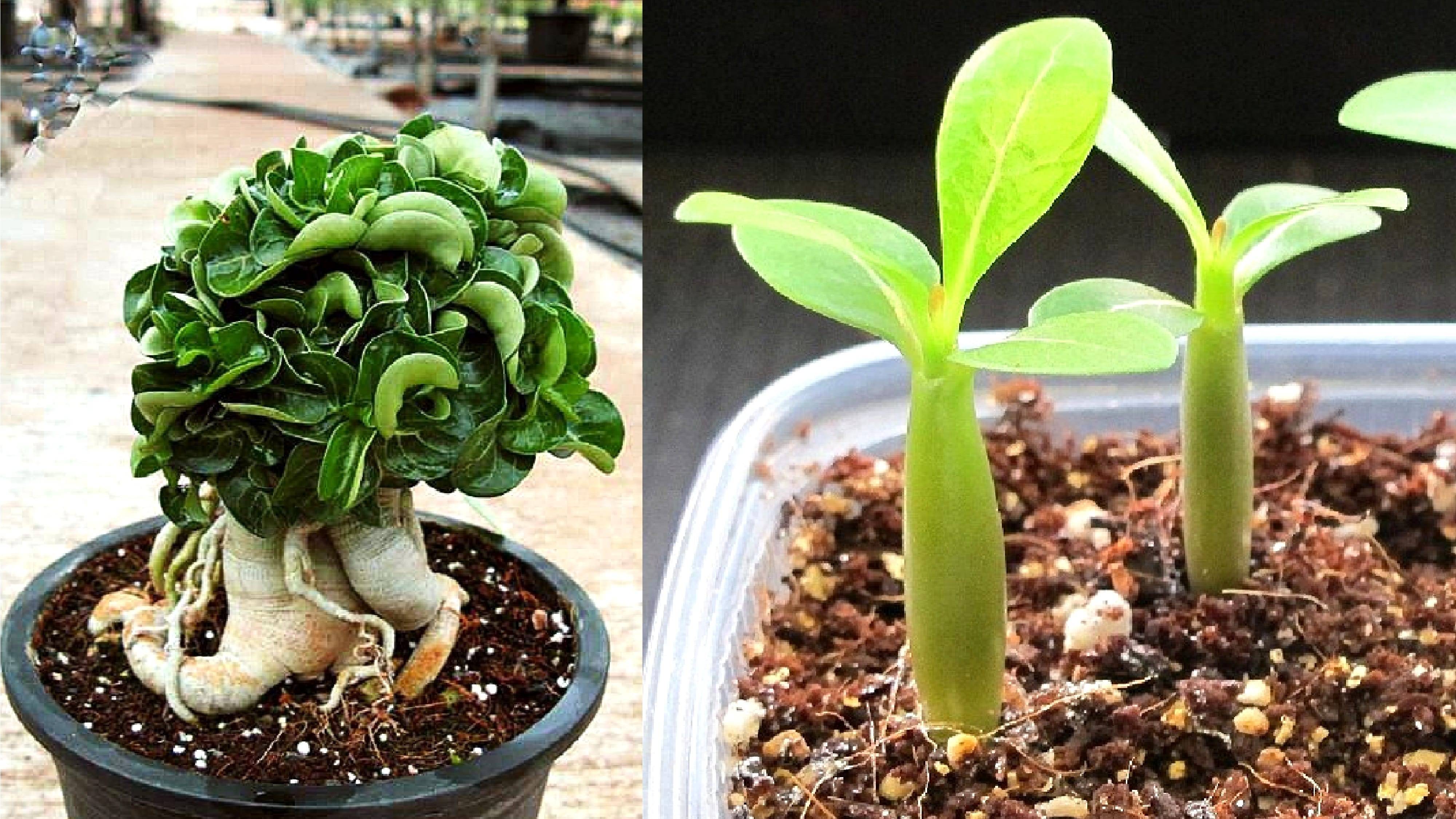 Adenium Thai Socotranum DORSET HORN - редкий адениум, названный в честь овечек и барашков породы Дорсет Хорн. Визитной карточкой гибрида являются, конечно же, скрученные, словно винтовые рога, листья. Также отличается низкорослостью и сильной ветвистостью. Отлично подходит для выращивания в стиле бонсай, поскольку сам по мере роста принимает нужные формы. Даже без цветов "Dorset Horn" крайне декоративен. Калотропис гигантский - кустарник от 1 до 5 м высотой. Листья продолговатые, обратнояйцевидные, с небольшим заострением или тупые на верхушке, 7-30 см длиной и 3-15 см шириной. Молодые листья имеют беловойлочное опушение, с течением времени становятся голыми, серовато-зелёной окраски. Цветки собраны в сложные зонтики. Цветоносы массивные, 5-15 см длиной. Цветоножка толстая. Чашечка почти плоская, до 1,5 см диаметром. Нуждается в теплом и светлом содержании круглый год. Растет достаточно быстро. Смесь для посадки: торф, перегной, листовая и дерновая земля, перлит. Перед посевом семена замачивают на 2-4 ч. в теплой воде и высевают в смесь торфа, перегноя и песка. Проращивают в тепличке, при 25-30°C. Acacia DEALBATA - Акация серебристая, Акация подбелённая. Акация - крупный род цветковых растений семейства Бобовые. Акация серебристая - дерево с широкой цилиндрической кроной, достигающим высоты 25 метров. У молодых деревьев кора гладкая, светло-зеленого оттенка, с серебристым отливом. Зрелые деревья имеют серо-коричневую или серую кору. Цветет желтыми или серо-желтыми многочисленными, ароматными цветочками, собранными в шаровидные соцветия. Высаженные весной при 20°С семена быстро прорастают. Перед посевом все семена скарифицируют, ошпаривая их твёрдую оболочку очень горячей водой (~80°С). После этого семена следует погрузить в холодную воду. Выдерживают ещё не менее 12-ти часов в воде, и не подсушенные, высевают во влажную почву под стекло/пленку. Проращивают при температуре 20°С. Семена сохраняют всхожесть много лет. В подготовленную емкость насыпаем грунт и сверху выкладываем семена плашмя. Сверху присыпаем слоем 0,5 – 1 см, можно не присыпать, а просто прижать. Увлажняем почву из пульверизатора. Накрываем емкость крышкой или помещаем в пластиковый пакет, можно накрыть пищевой пленкой. Ставим в теплое место, например, на батарею центрального отопления или сушилку для полотенец в ванной комнате до появления всходов. Тепличку необходимо проветривать. Желательно по 30 мин. утром и вечером. Окончательно снять крышку/пленку можно ориентировочно через месяц, когда прорастут все ожидаемые семена. Увлажнение субстрата осуществляется по мере необходимости. Старайтесь, что бы посевная смесь оставалась влажной, но не мокрой (!). Если все-таки случайно полили больше чем необходимо, тепличку следует проветривать пока не испариться лишняя влага. https://youtu.be/roD16Mu9pvI #адениум #цветы #растения