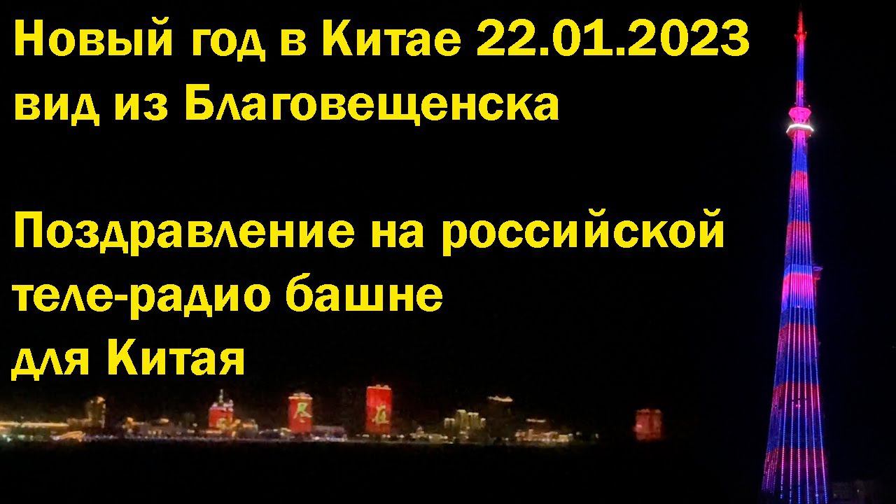 Новый год в Китае 22.01.2023, вид из Благовещенска. Поздравление на российской теле-радио башне