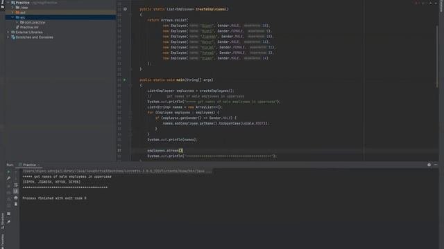 In this example we will use foreach loop and stream that will help print all the male employees name in uppercase.
