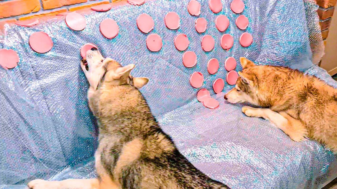 РЕАКЦИЯ ХАСКИ НА ДИВАН ИЗ КОЛБАСЫ !! (Хаски Бублик) Говорящая собака Mister Booble