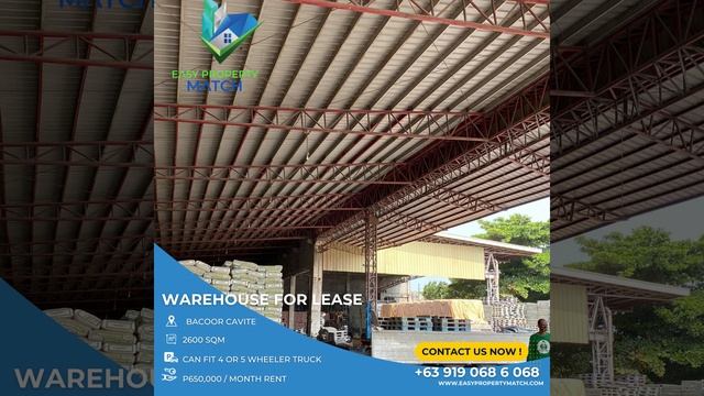 BACOOR CAVITE WAREHOUSE WITH OFFICE FOR LEASE RENT NEAR PASAY Lot Area: 2600 sqm Warehouse w/ office, meeting room, stock room, kitchen, etc Can fit heavy equipments, long trailer trucks, etc Warehouse / Data Center /Distribution hub Terms: Price: P650,000/month 2 months advance 2 months deposit 3 year contract SAVE TIME! just send us your requirement and we will provide you with a list of properties to choose from. ***PLEASE CALL US NOW*** +639171500963 (viber/whatsapp/telegram) EASY PROPERTY MATCH® Real Estate Broker License 27636 微信 easypropertymatch www.easypropertymatch.com https://easy-property-match.business.site __________________________________________________________ Do you want to list your property with us? PLEASE CALL US +639171500963 ___________________________________________________________ ***PLEASE READ*** DIRECT CLIENTS ONLY ___________________________________________________________ #warehouseforrentcavite #warehouseforleasecavite #warehouseforrentbacoor #warehouseforleasebacoor #warehouseforrentpasay #warehouseforleasepasay #canfit4wheeler #canfit5wheeler