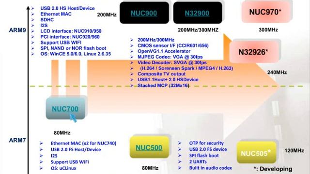 時間:2013年11月07日上午10:00~12:00 本次研討會將介紹品佳集團大力推廣的Nuvoton視頻監控智慧家居解決方案。 近年來,隨著網路寬頻技術與H.264等高解析度影像壓縮技術的發展成熟,網通技術推陳出新,帶動了視頻監控市場的興起。從政府、公共場所、企業、到家庭、門禁、防盜、遠端監控、保全、居家照護、視訊會議等等。視頻監控系統從以往PC板卡發展到今天的嵌入式系統,監控產品變得越來越專,集成度也越來越高。壓縮規格已經從JPEG、MPEG2、MPEG4發展到H.264,壓縮效率越來越高,這表明同樣的頻寬能傳送更高品質的畫面。除此之外,監控影像也逐漸從類比轉向數位信號,系統從封閉轉向開放式與網路化。 新唐科技以靈活之技術、先進之設計能力及數位類比整合技術能力為該市場提供高性價比之產品。其推出的N329XX 系列SoC產品是集成ARM9高性能處理器和硬體的Motion JPEG或H.264轉碼器,以及DDR2記憶體的高性價比產品,非常適合視頻監控產品的應用。另外新唐科技還提供了非常豐富的Cortex M0 MCU及ISD語音產品,為視頻監控智慧家居提供一體化的解決方案。 本次研討會的詳細內容包括: 1. 視頻監控和智慧家居產品的產品定義和分類。 2. N329XX系列SoC產品介紹。 3. 基於N329XX SoC的WIFI無線視頻監控解決方案介紹。 4. Nuvoton 智慧家居相關產品介紹(ARM7,ARM9, M0,ISD,Codec,AMP)。