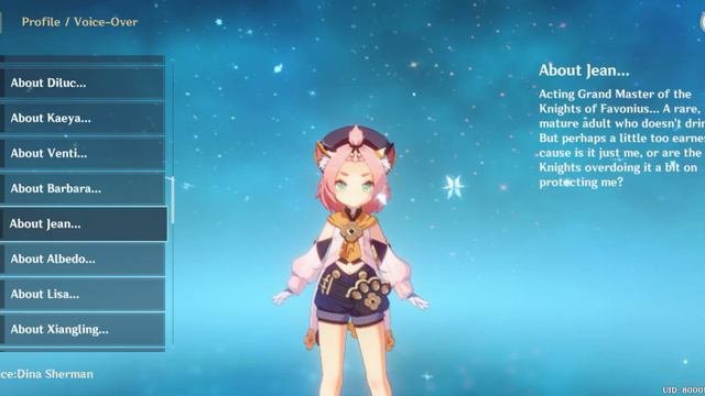 (En dub) Genshin Impact English voice actor of Diona: Dina Sherman 0:00 About the Vision - Heirloom 0:18 About Diluc 0:35 About Kaeya 0:48 About Venti 1:02 About Barbara 1:12 About Jean 1:28 About Albedo 1:38 About Lisa 1:55 About Xiangling 2:17 About Klee 2:34 About Her Father This was made in Genshin Impact version 1.2 #genshinimpact #genshin #genshin_impact