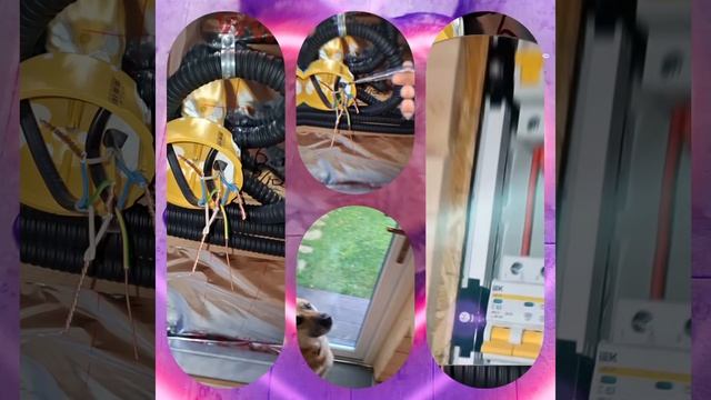 1000039136.mp4 (Собака смотрит на монтаж электропроводки (распайку р/коробок) в доме А-фрейм)