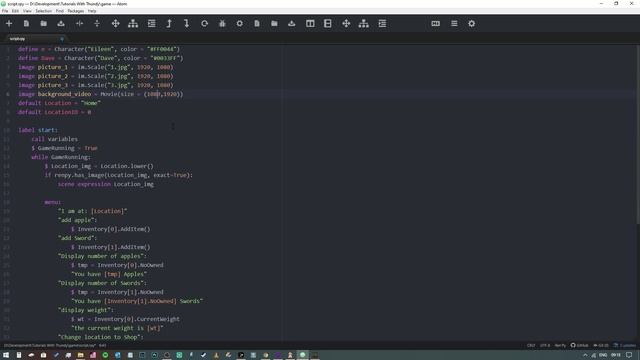 Don't forget to subscribe for more content. In this quick video we look at how to define a movie as if it were an image and then use it. ******************* Links ********************* Support me on Patreon: https://www.patreon.com/ThundornGuides Twitter: https://twitter.com/ThundornGames Download Ren'Py: http://www.renpy.org Download Atom code editor: https://atom.io/ Visit the lemmasoft Forums: https://lemmasoft.renai.us/forums/