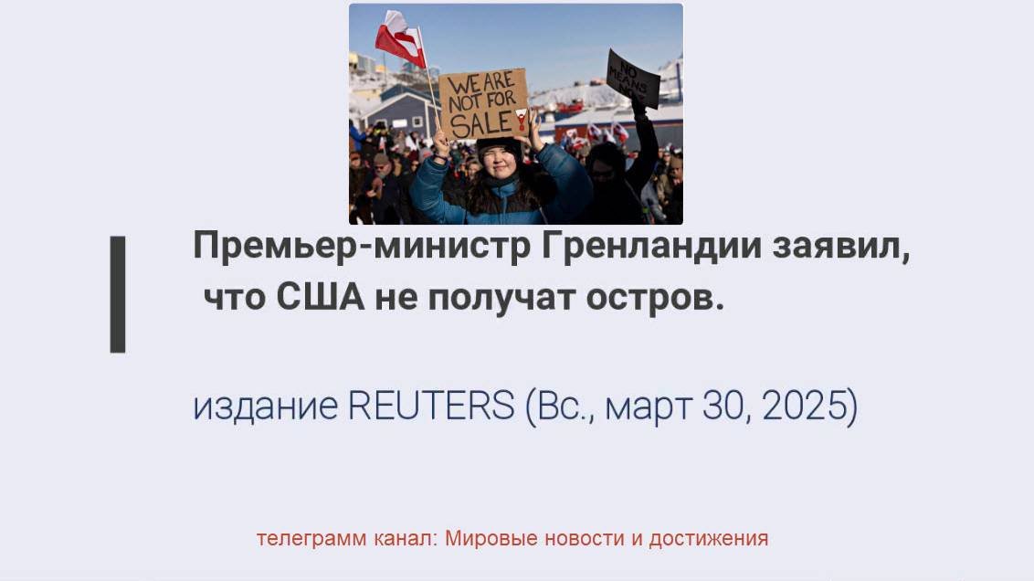 Соединенные Штаты не получат Гренландию, заявил в воскресенье премьер-министр Йенс-Фредерик Нильсен в своем посте в Facebook в ответ на заявления Дональда Трампа о том, что он хочет взять под контроль обширную арктическую страну.