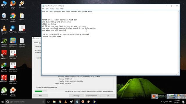 check system and graphic card status :how to check full properties of sound/audio and direct x driver