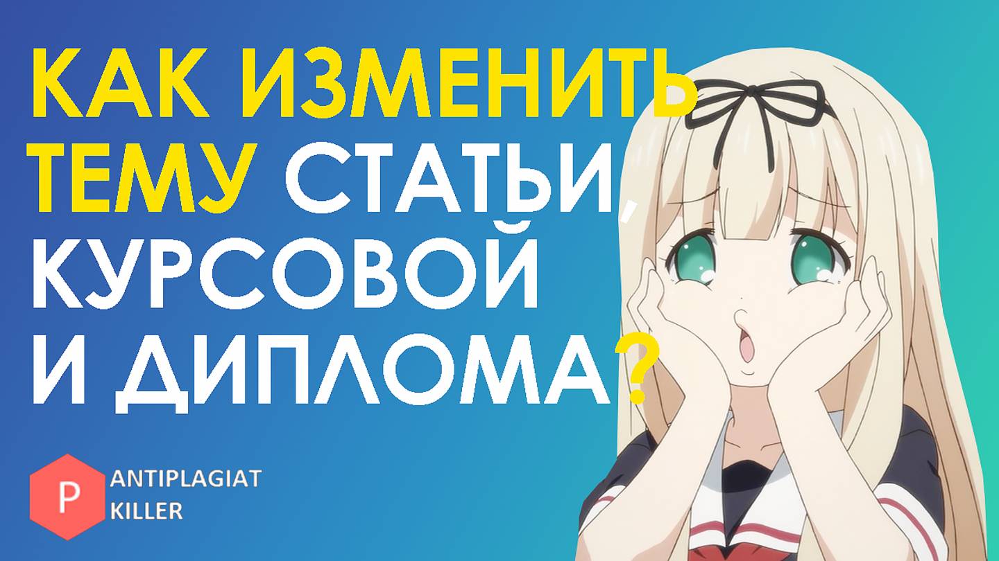 Мы очень часто говорили, что при выборе темы исследования нужно опираться на актуальность и востребованность темы. Но всё же случается так, что изначально выбранный вопрос теряет актуальность и становится неликвидным для изучения. В нашем большой обзоре мы обсудим, как поменять тему статьи, курсовой и диплома, дадим практические советы, как можно отстоять право на изменение на кафедре и дадим лайфхаки, как выбрать вопрос, чтобы уже точно его никогда не менять Видео с запрещёнными и ужасными темами для диплома - https://rutube.ru/video/2b76418e0639d94f69cb7380fb6fb70f/ 🌎 Наш сайт - https://killer-antiplagiat.ru/ 🔖 ПРОМОКОД НА СКИДКУ 20% - AKyou 📧 Почта - [email protected] 📝 Группа ВКонтакте - https://vk.com/kakobmanut_antiplagiat 📝 Телеграмм канал - https://t.me/antiplagiat_killer 📝 Наш блог на Рутубе - https://rutube.ru/channel/35406174/ Текстовая статья о том, как повысить уникальность текста - https://killer-antiplagiat.ru/blog/kak-povysit-originalnost-teksta Текстовая статья о том, как проверить текст на уникальность бесплатно - https://killer-antiplagiat.ru/blog/antiplagiat-besplatno НАШИ УСЛУГИ: 📎Проверить уникальность текста, в том числе через Антиплагиат.ВУЗ - https://killer-antiplagiat.ru/proverit-unikalnost-teksta-onlajn 📎Повысить уникальность текста - https://killer-antiplagiat.ru/povysit-unikalnost-teksta-onlajn 📎Заказать ручной рерайт текста - https://killer-antiplagiat.ru/ruchnoj-rerajt-teksta-zakazat 📎Оформление научной работы по ГОСТу - https://killer-antiplagiat.ru/oformit-rabotu-po-gostu-onlajn-besplatno НАШИ БЕСПЛАТНЫЕ УСЛУГИ: 📎Бесплатное повышение уникальности текста - https://killer-antiplagiat.ru/povysit-unikalnost-teksta-onlajn-besplatno 📎Синонимайзер текста - https://killer-antiplagiat.ru/synonimizer 📎Переписать текст с помощью искусственного интеллекта - https://killer-antiplagiat.ru/perepisat-perefrazirovat-tekst-nejrosetyu-ai-iskustvennyj-intellekt-besplatno-onlajn Сайты на которых можно скачать работу бесплатно: 📒 Скачать-диплом.рф Каталог бесплатных работ- https://скачать-диплом.рф/ 📗 ALLREF.RU: подбор научной информации - https://allref.su/ 📘 STUDRES: база готовых работ - https://studres.ru/