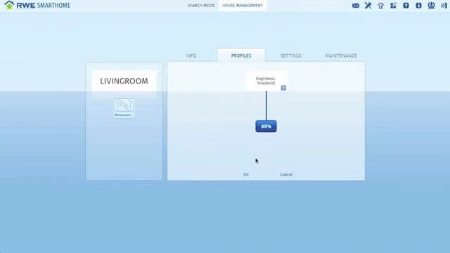 Добавьте новый профиль из списка предложенных. Выберите Event Profile, если вы хотите, например, связать 2 устройства: датчик движения и адаптер, к которому подключен торшер. RWE Smarthome активирует профиль каждый раз, когда срабатывает датчик движения. Перетащите иконки адаптера и датчика движения в новый профиль. Теперь щелкните на датчик движения и установите яркость света, при которой должен сработать датчик движения. Кликните на иконку адаптера, что выбрать длительность, скорость затемнения, а также автоматическое выключение подключенного к адаптеру торшера. Сохраните установки. Добавьте имя для нового профиля и сохраните установки.