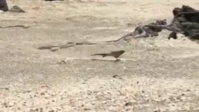 Игуана выбирается из змеиной засады.