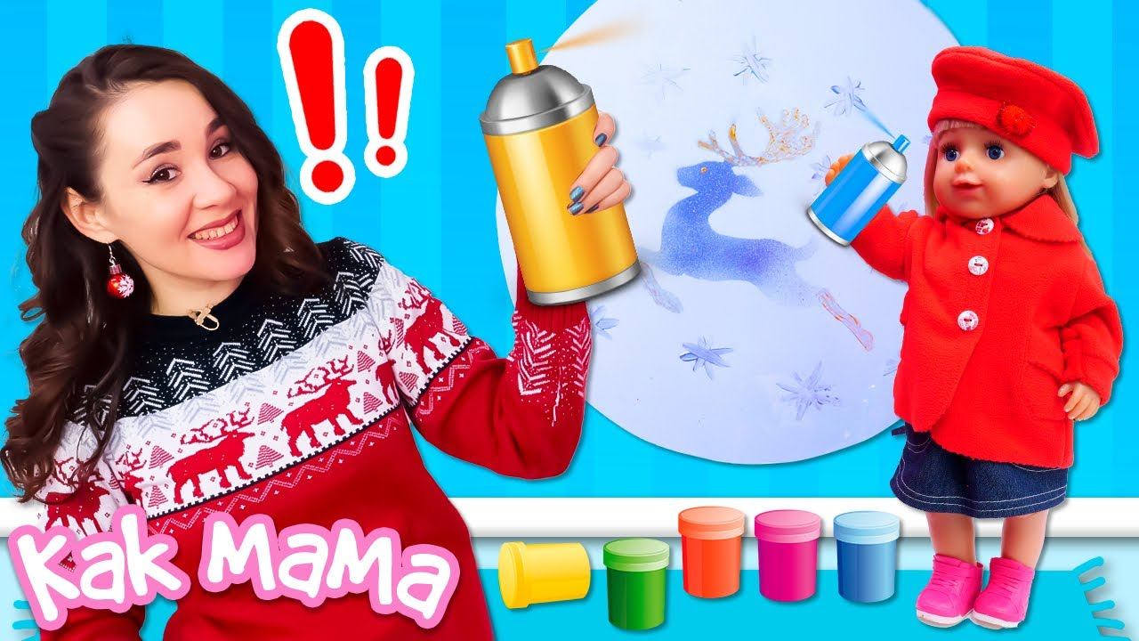 Как мама для куклы Беби Бон — Эмили рисует оленя на стекле — Зимние игры для девочек