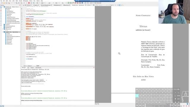 Capítulos: 00:00 - Introdução; 03:00 - Download dos aplicativos necessários; 06:05 - Instalação dos aplicativos; 11:30 - Teste e configuração do ambiente; 23:00 - Opcional: configurações adicionais (limpeza do projeto); 30:56 - Opcional: versionamento. Links das ferramentas e dos templates para download: - MiKTeX: https://miktex.org/ - TeXstudio: https://www.texstudio.org/ - Repositório de templates IFSP: https://github.com/davidbuzatto/TemplatesTrabalhosIFSPSBV