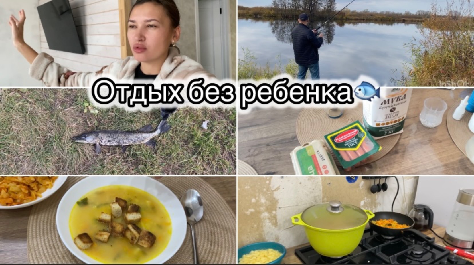 НА РЫБАЛКУ С РОДИТЕЛЯМИ// ПОЙМАЛИ ЩУКУ// ВАРЮ ГОРОХОВЫЙ СУП С СУХАРЯМИ🍁