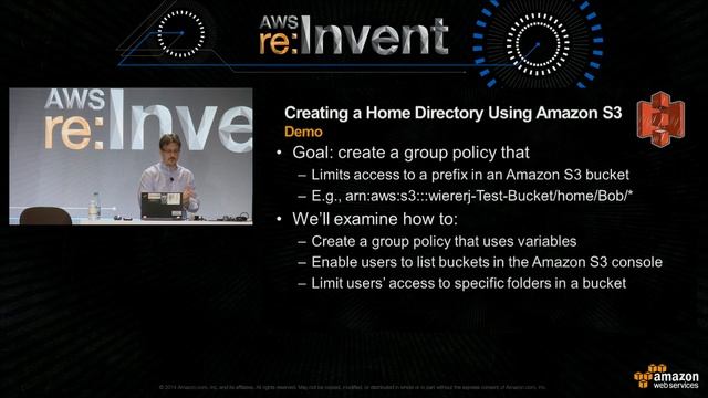 If you have ever wondered how best to scope down permissions in your account, this in-depth look at the AWS Access Control Policy language is for you. We start with the basics of the policy language and how to create policies for users and groups. We look at how to use policy variables to simplify policy management. Finally, we cover some common use cases, such as granting a user secure access to an Amazon S3 bucket, allowing an IAM user to manage their own credentials and passwords, and more.