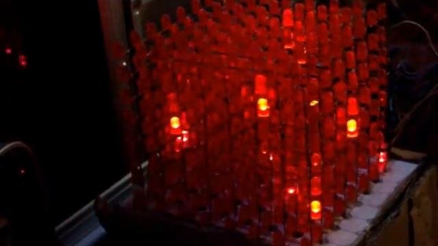 Red led cube 8x8x8 Светодиодный куб 8 x 74hc595n + uln2803 + arduino uno + 512 red leds & 64 x 220Ohm resisters. My scheme (Моя схема) - https://pp.vk.me/c604322/v604322296/3da04/zNYfeAePqwQ.jpg Arduino Code (Код для ардуино) - https://vk.com/doc15346296_439445672?hash=7dab8bd54622dc692c&dl=6184b5968675c6cf29 --------------------------------------------------------------------------- P.S. The Led matrix has been made from different parties of leds - superbright and no (I know, it's my lack and it's not good looking).