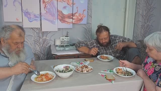 Как вкусно кушаем и готовим всей семьёй мясное блюдо и салат