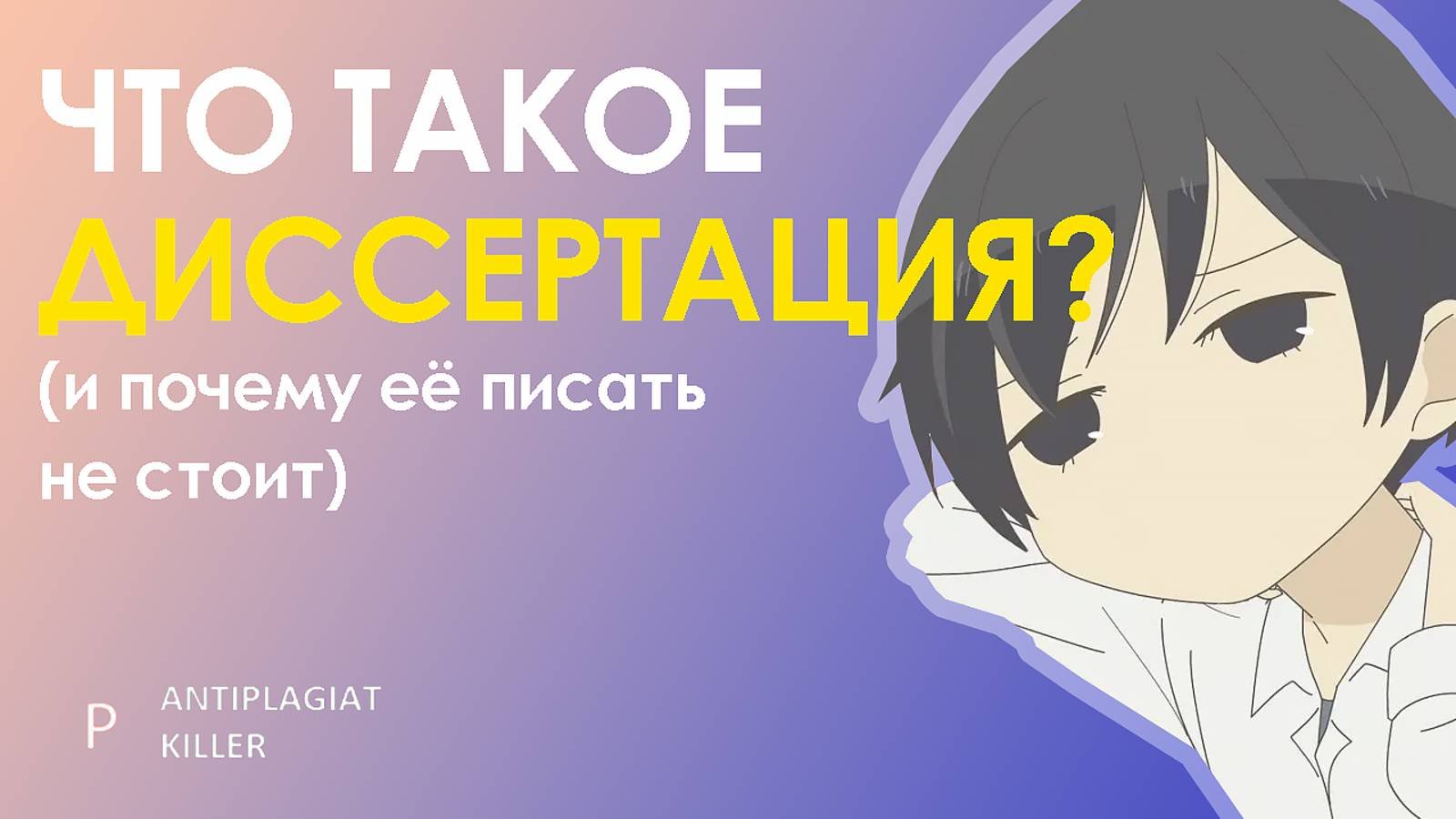 Сегодня изучим, что такое диссертация, когда её придётся писать и дадим вам советы, почему писать диссертацию - глупая идея 🌎 Наш сайт - https://killer-antiplagiat.ru/ 🔖 ПРОМОКОД НА СКИДКУ 20% - AKyou 📧 Почта - [email protected] 📝 Группа ВКонтакте - https://vk.com/kakobmanut_antiplagiat Текстовая статья о том, как повысить уникальность текста - https://killer-antiplagiat.ru/blog/kak-povysit-originalnost-teksta Текстовая статья о том, как проверить текст на уникальность бесплатно - https://killer-antiplagiat.ru/blog/antiplagiat-besplatno НАШИ УСЛУГИ: 📎Проверить уникальность текста, в том числе через Антиплагиат.ВУЗ - https://killer-antiplagiat.ru/proverit-unikalnost-teksta-onlajn 📎Повысить уникальность текста - https://killer-antiplagiat.ru/povysit-unikalnost-teksta-onlajn 📎Заказать ручной рерайт текста - https://killer-antiplagiat.ru/ruchnoj-rerajt-teksta-zakazat 📎Оформление научной работы по ГОСТу - https://killer-antiplagiat.ru/oformit-rabotu-po-gostu-onlajn-besplatno НАШИ БЕСПЛАТНЫЕ УСЛУГИ: 📎Бесплатное повышение уникальности текста - https://killer-antiplagiat.ru/povysit-unikalnost-teksta-onlajn-besplatno 📎Синонимайзер текста - https://killer-antiplagiat.ru/synonimizer 📎Переписать текст с помощью искусственного интеллекта - https://killer-antiplagiat.ru/perepisat-perefrazirovat-tekst-nejrosetyu-ai-iskustvennyj-intellekt-besplatno-onlajn Сайты на которых можно скачать работу бесплатно: 📒 Скачать-диплом.рф Каталог бесплатных работ- https://скачать-диплом.рф/ 📗 ALLREF.RU: подбор научной информации - https://allref.su/ 📘 STUDRES: база готовых работ - https://studres.ru/