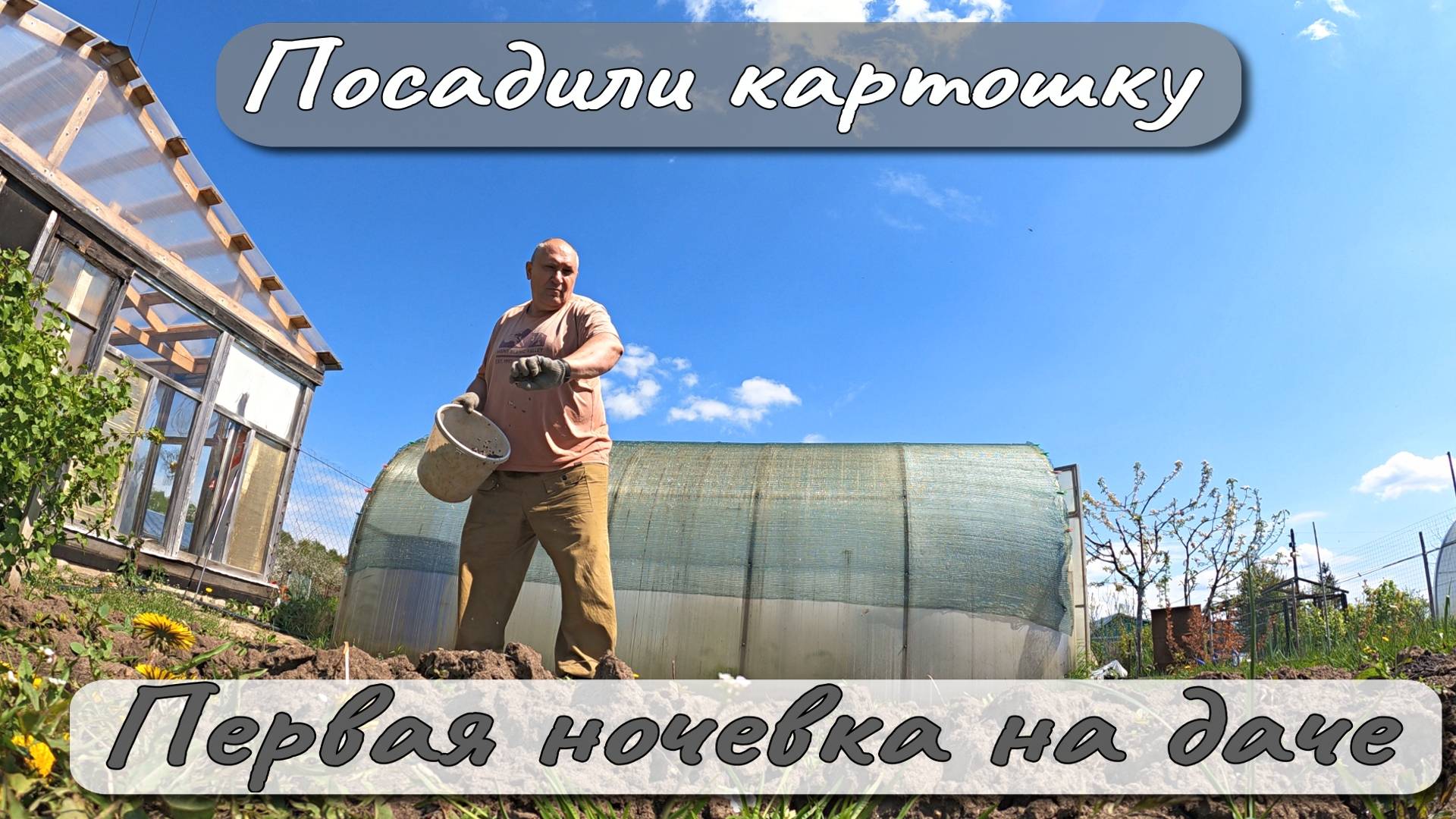 Пора уже сажать картошку - чему мы посвятили этот день. Также мы первый раз ночуем на даче в этом сезоне. Жарим картошку, ловим главную медведку, выравниваем грядку, работаем в теплицах и немного отдыхаем.
