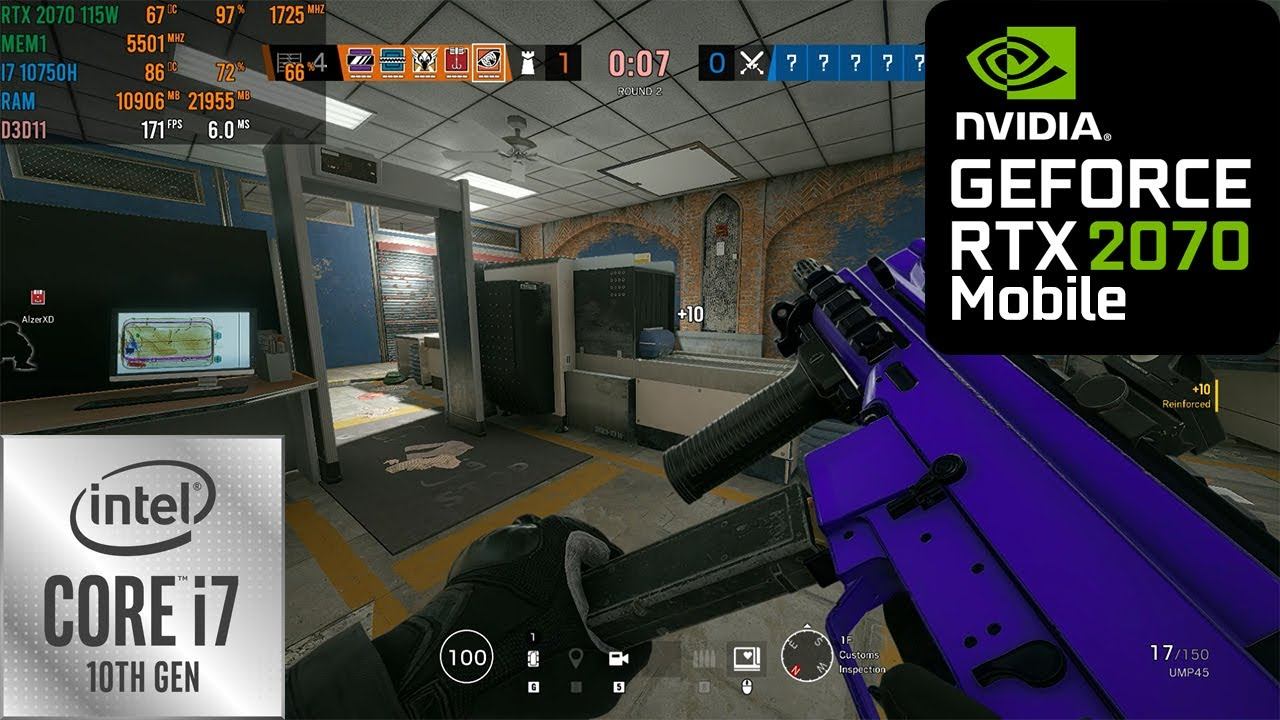 Playing Rainbow Six Siege on the Alienware M17 R3 on High Settings Recorded using Nvidia Shadowplay MSI Afterburner used to measure fps Alienware M17 R3 Specs CPU : I7 10750H GPU : RTX 2070 115W 8GB RAM : 16 GB DDR4 2666MHZ