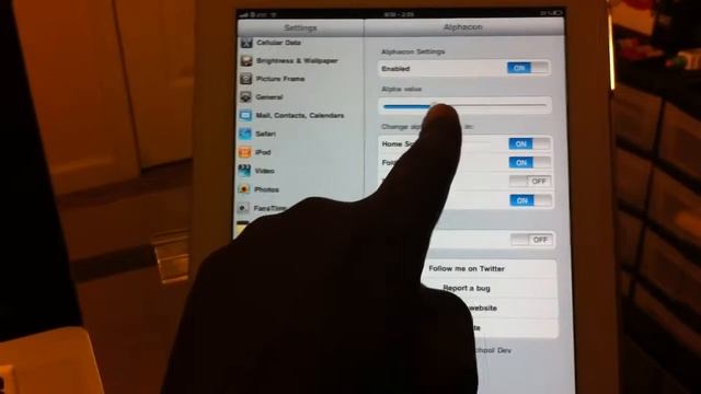 Follow Me on Twitter http://twitter.com/danielthe_great This is a video of an iOS tweak, which allows you to set the alpha (transparency) levels of the icons.. You can get this tweak in Cydia. www.dhwireles.com www.twitter.com/dhwireles