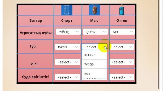 Тренажер "Кейбір таза заттың қасиеттері"