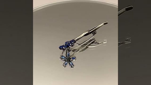 Брошь цветок из серебра оксид с голубой искусственной шпинелью Б13815744-4