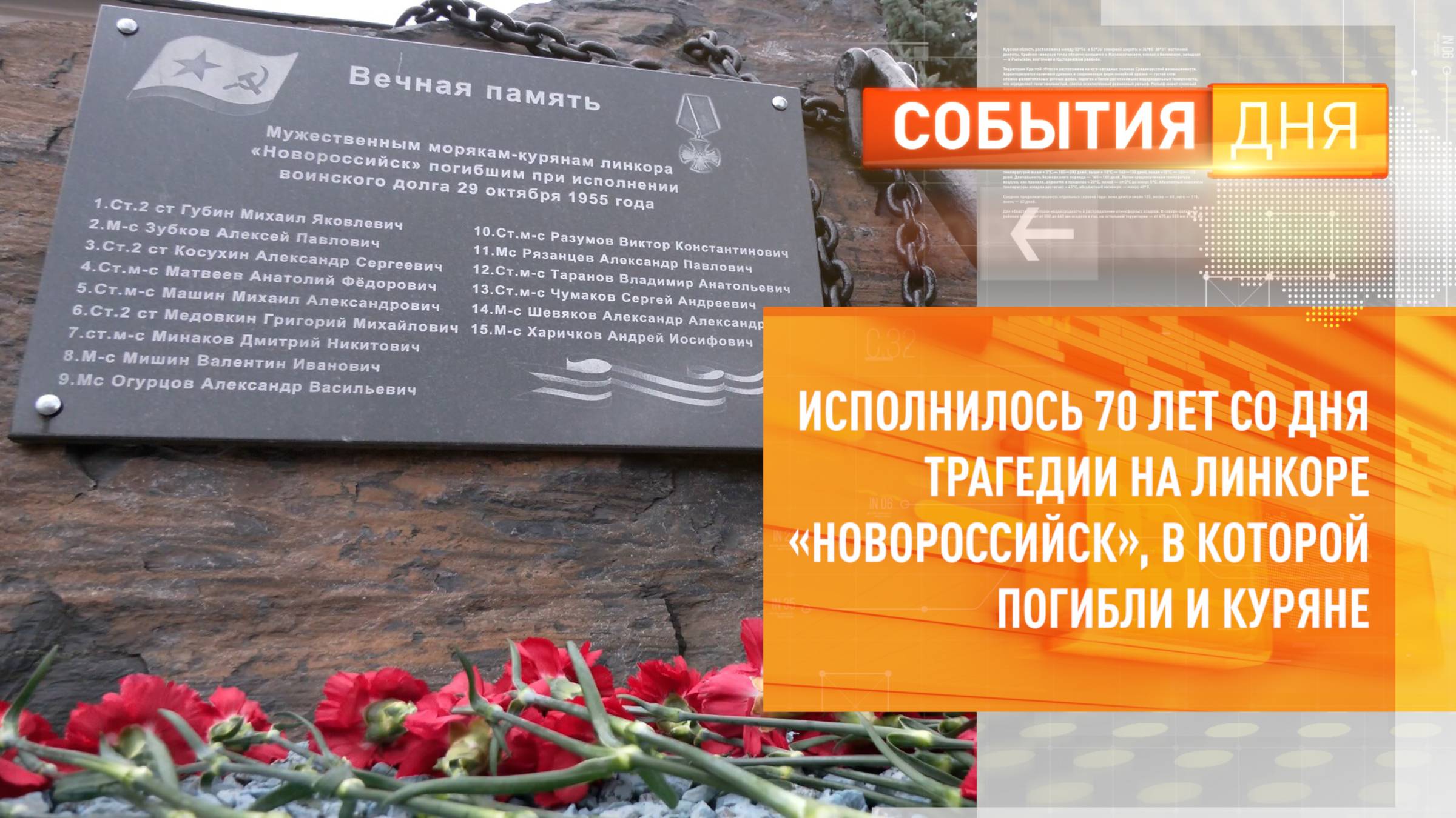 29 октября исполнилось 70 лет со дня трагедии на линкоре «Новороссийск». Флагман черноморской эскадры военно-морского флота СССР затонул в Северной бухте Севастополя в 1955 году. Трагедия унесла жизни более 600 моряков. Среди них были и куряне.