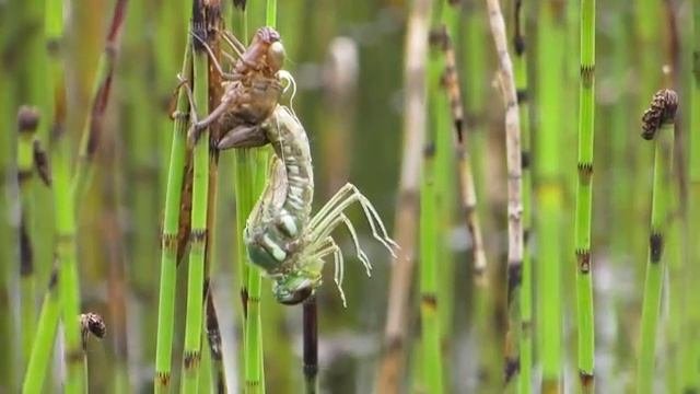 Common Hawker Dragonfly emerging from larval skin, spotted on guided walk.