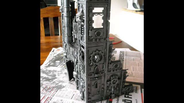 This is the manufactorum part of my cities of death project. Basicly i took two kits and mixed them up and joined them together. The base coat on this piece is Chaos Black and the metal coat that you see is Bolt Gun Metal. when i get time i will finish it off , probably with a 50/50 mix of black & brown ink and some rust effects. please fell free to rate this clip and leave a comment.