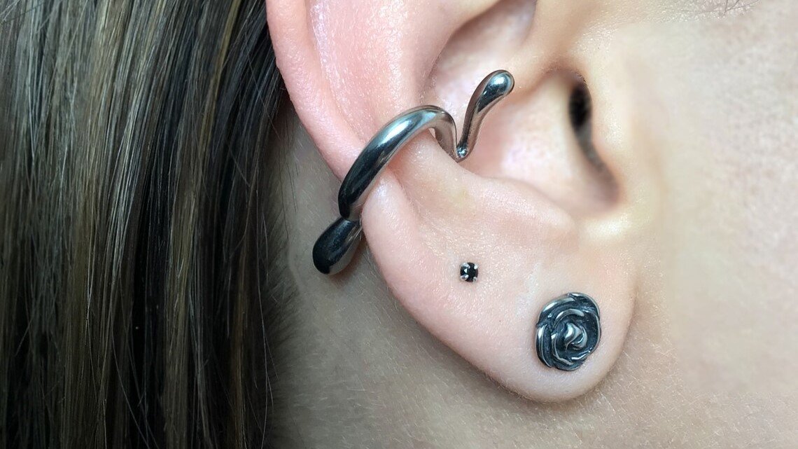 Серьга каффа без прокола "Стальная абстрактная капля" от StarfallShop