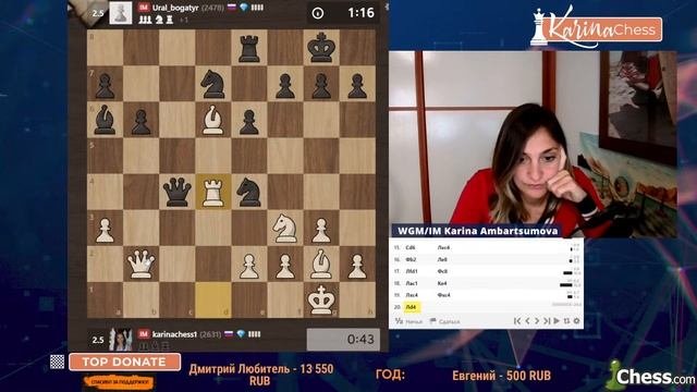 Титульный вторник на chess.com 11 туров 3+1 Поддержать канал: https://www.donationalerts.com/r/karinachess1 Подписаться на мой канал: https://www.youtube.com/channel/UChor8u_hhgrjX2lt0QLzZHA?sub_confirmation=1 Стать спонсором канала: https://www.youtube.com/channel/UChor8u_hhgrjX2lt0QLzZHA/join Обучающий курс "Пешечные структуры" http://bit.do/pawns-structures Рестрим: https://www.twitch.tv/karinachess1 Рада приветствовать Вас на канале женского международного гроссмейстера, международного мастера Карины Амбарцумовой! Я - профессиональная шахматистка и тренер. Здесь вы сможете найти обучающие видеоуроки по шахматам, комментарии турниров, стримы моей игры в блиц шахматы. Подписывайтесь на мои странички в соц.сетях: ВКонтакте: https://vk.com/karinachessclub Twitch: https://www.twitch.tv/karinachess1 Почта для связи: [email protected] Поддержать канал: https://www.donationalerts.com/r/karinachess1 Мой сайт: http://chesscoach.ru/