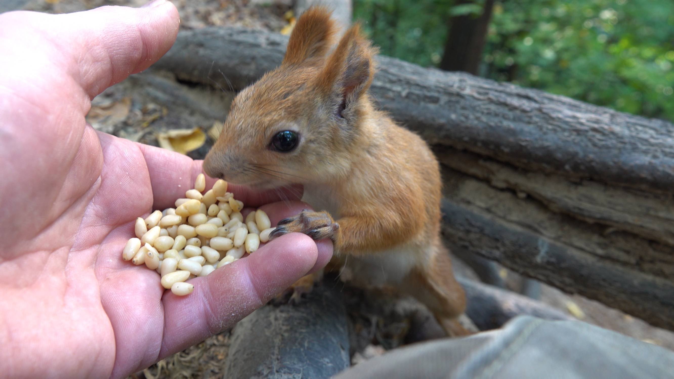 Покормил Рыжую и Белку с хвостиком. Зарисовка