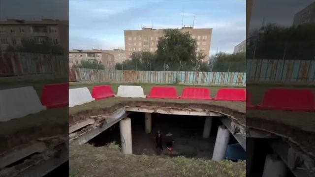 Футбольное поле на школьном стадионе в Орске ушло под землю. В итоге посреди футбольного поля, под которым и находится платный паркинг, сияет огромная дыра #война #войнаукраина #спецоперация #новости #украина #россия #войнанаукраине #сми