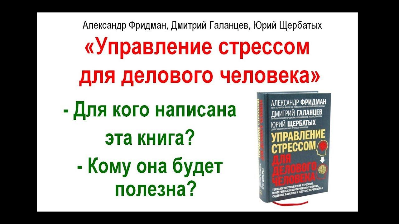 Книга «Управление стрессом для делового человека» посвящена теме «Стрессы руководителя и его стрессоустойчивость». Она написана прежде всего для людей с активной жизненной позицией, амбиционных и успешных – которым порой приходится расплачиваться своим здоровьем за успех и богатство. Нередко руководители и бизнесмены страдают эмоциональным выгоранием, и перед ними стоит задача повысить свою стрессоустойчивость. Дело в том, что стрессовые ситуации нередки в работе менеджера, юриста, бизнесмена, а вот способы как надежно снять стресс, им не знакомы. Чтобы избежать синдрома эмоционального выгорания, нужно не только выяснить причины стресса, но и овладеть навыками управление стрессом. Именно для этой цели создана книга «Управление стрессом для делового человека» (А.Фридман, Д.Галанцев, Ю.Щербатых). В ней рассказывается, как уменьшить профессиональный стресс, как избавиться от стрессов, что такое правильный стресс-менеджмент и т.д. Профессор Юрий Щербатых изложил в этой книге научные способы снятия стресса, которые нужны, если возникают стрессовые ситуации на работе. Другие соавторы книги рассказали, что делать, если вы столкнулись со стрессами руководителя, стрессом менеджера, стрессом в бизнесе и т.д. Успешный московский юрист Дмитрий Галанцев рассказывает, как повысить стрессоустойчивость руководителя, и каким бывает стресс юристов. В целом книга на тему «стрессы руководителя и его стрессоустойчивость» будет полезна вам, если вы чувствуете стресс в работе руководителя, стресс делового человека, профессиональный стресс менеджера, стресс лидера, стресс бизнесмена, стресс директора. Ответы на вопросы – как с ними справиться вы узнаете в книге «Управление стрессом для делового человека». Подробный разбор содержания книги https://youtu.be/2ud7BSKvrWo История написания книги - https://youtu.be/x0bN2994EKg Посмотреть другое видео «Проблемы и стрессы руководителей» можно здесь: https://www.youtube.com/watch?v=34G3oojEymI Видео «Профессиональные стрессы»: https://www.youtube.com/watch?v=xYb_Sp2BZis Авторские сайты Профессора Ю.В.Щербатых: По управлению персоналом и повышению продаж: http://HR-rabotniki.ru По управлению стрессом: http://net-stressu.ru Моя страница в Facebook - https://www.facebook.com/net.stressu Моя страница в ВК - https://vk.com/id147042022 Заказать книгу «Управление стрессом для делового человека» можно на «Озоне»: https://www.ozon.ru/context/detail/id/143428025/