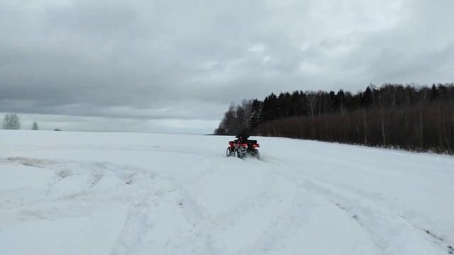 Первые наши водяные преграды на квадроцикле , еще и зимой ! Квадроцикл в полном стоке и резина на колесах тоже в заводе . Благодаря блокировкам и полному приводу отлично справился со своими задачами , для чего собственно его и покупали ! Зимой на квадроцикле весело ,НО снегоход все ровно лучше ;)