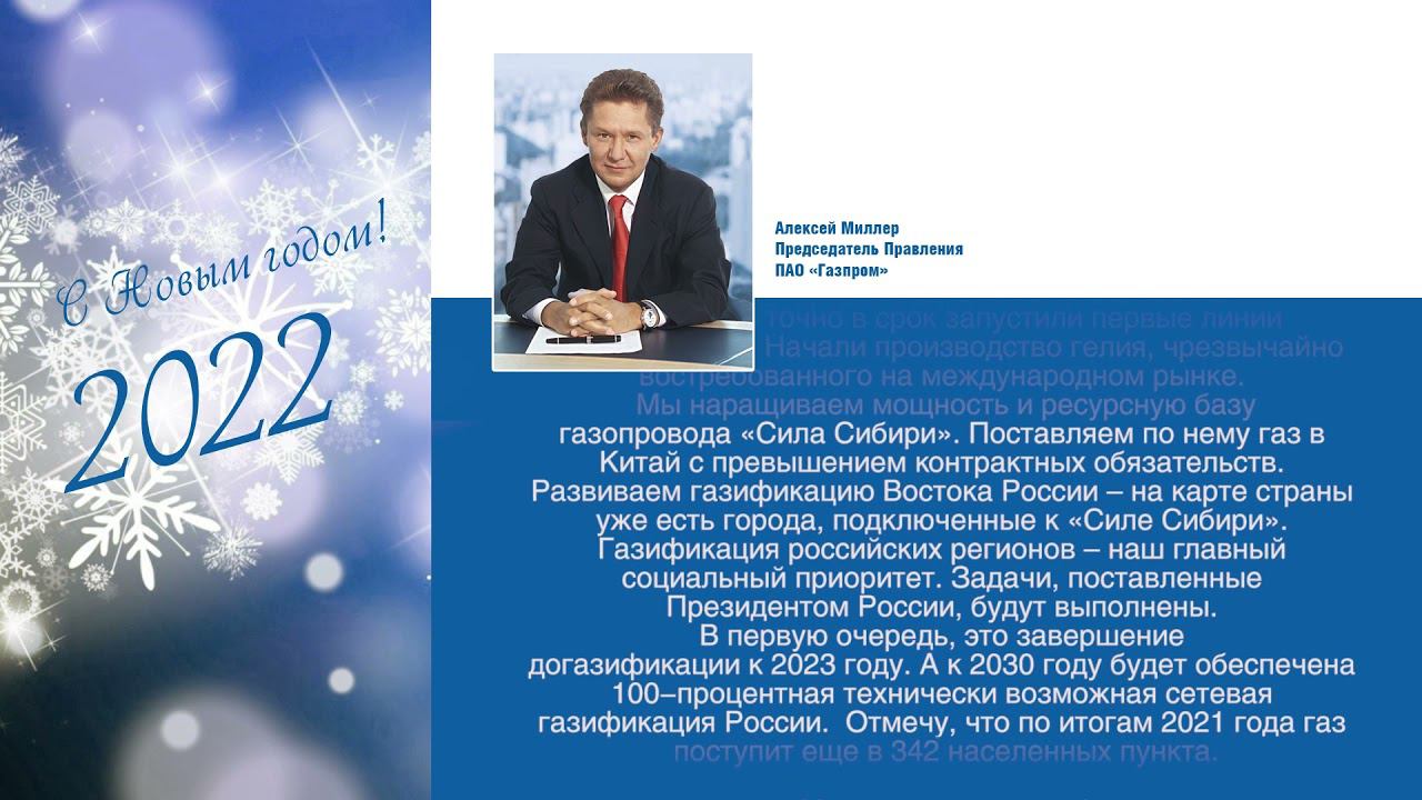 Поздравление А.Б.Миллер с Новым годом