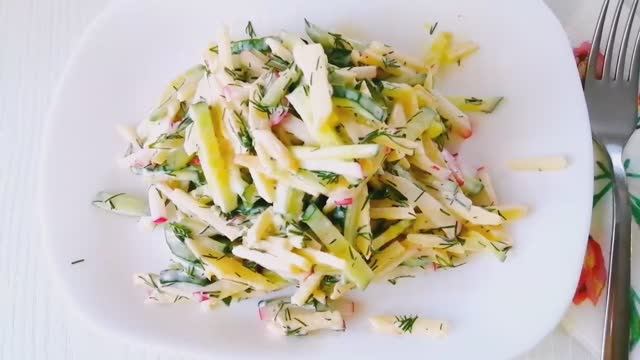 Вкуснейший, простой и лёгкий салат! ??? Понадобится : ✅ Огурец свежий - 1 шт ?, ✅ Яблоко крупное - 1 шт ??, ✅ Редис средних размеров - 6 шт, ✅ Укроп - пучок, ✅ Майонез домашний или сметана - 2 - 3 ст ложки, ✅ Соль по вкусу. #салат#легкийсалат#салатсогурцом#салатсяблоком#салатсредисом#весеннийсалат#рецептсалата#домашняяеда #аппетитно #быстровкусно #готовимвкусно #готовимдома #готовимсленой #домашняякухня #изпростыхпродуктов #люблюготовить #рецепты #овощнойсалат Друзья! Смотрите видео, готовьте вместе со мной. Подписывайтесь на мой канал! Впереди ещё много новых и интересных рецептов. А я, как всегда, желаю вам приятного аппетита! ❤️??