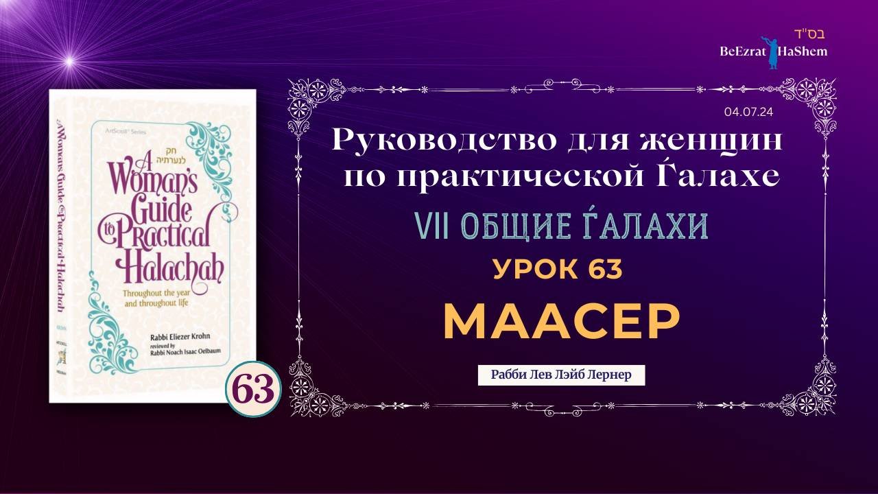 𝟲𝟯. Маасер | Руководство для женщин по практической Ѓалахе | Рабби Лев Лэйб Лернер