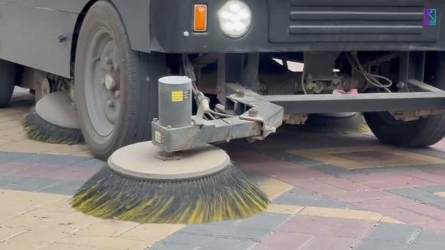 Подметально-уборочная машина чистит центральные улицы Керчи