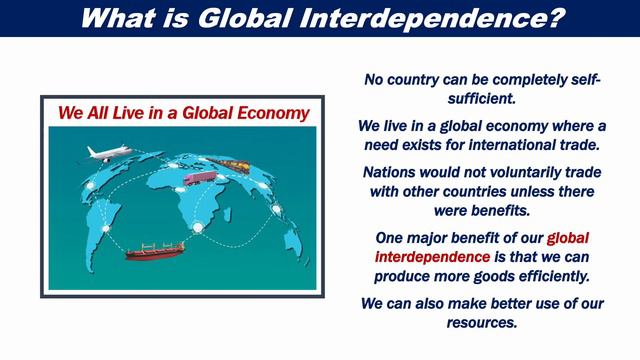 This video presentation explains what the term "global interdependence" means in easy and simple to understand language. Join this channel to get access to perks: https://www.youtube.com/channel/UCI8Xs2oPTMb9DkuYsEqCnnQ/join