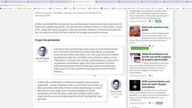 Avaliação da DPREVIEW das câmaras Canon EOS-R, Niko Z 6 e Z 7
