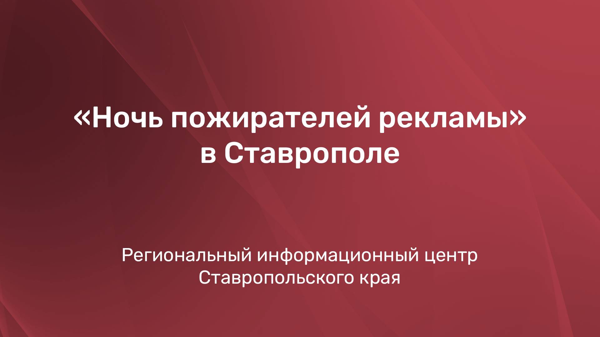 20 октября в 13:00 в Региональном информационном центре Ставропольского края состоится пресс-конференция «„Ночь пожирателей рекламы“ в Ставрополе» В Ставрополе спустя 17 лет вновь пройдет «Ночь пожирателей рекламы». Почему людям интересно смотреть такие ролики? Каков современный рынок креативных услуг? Как не потеряться в информационном хаосе? О перспективах и стратегиях расскажет: ▪️ Продюсер, директор проекта «Ночь пожирателей рекламы» Даниил Костинский
