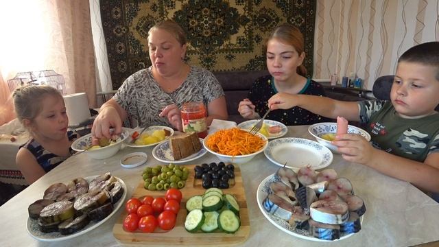 мукбанг скумбрия с картошкой
