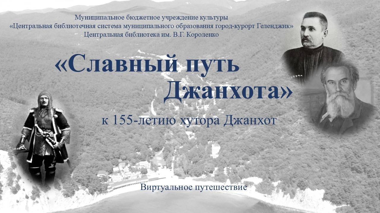 Центральная библиотека им. В. Г. Короленко к 155-летию хутора Джанхот представила медиа-презентацию «Славный путь Джанхота». В медиа-презентации показаны основные достопримечательности хутора. Рассказано об основателе первопоселенце Ф. Щербине. А так же повествуется о писателе В.Короленко и его усадьбе, в которой сегодня находится единственный в России «Дом-музей В.Г. Короленко». Посмотрев этот видеоролик, каждому любознательному читателю, захочется посетить хутор Джанхот и посмотреть его природные и исторические достопримечательности. #ЧитающийГеленджик, #БиблиотекиГеленджика